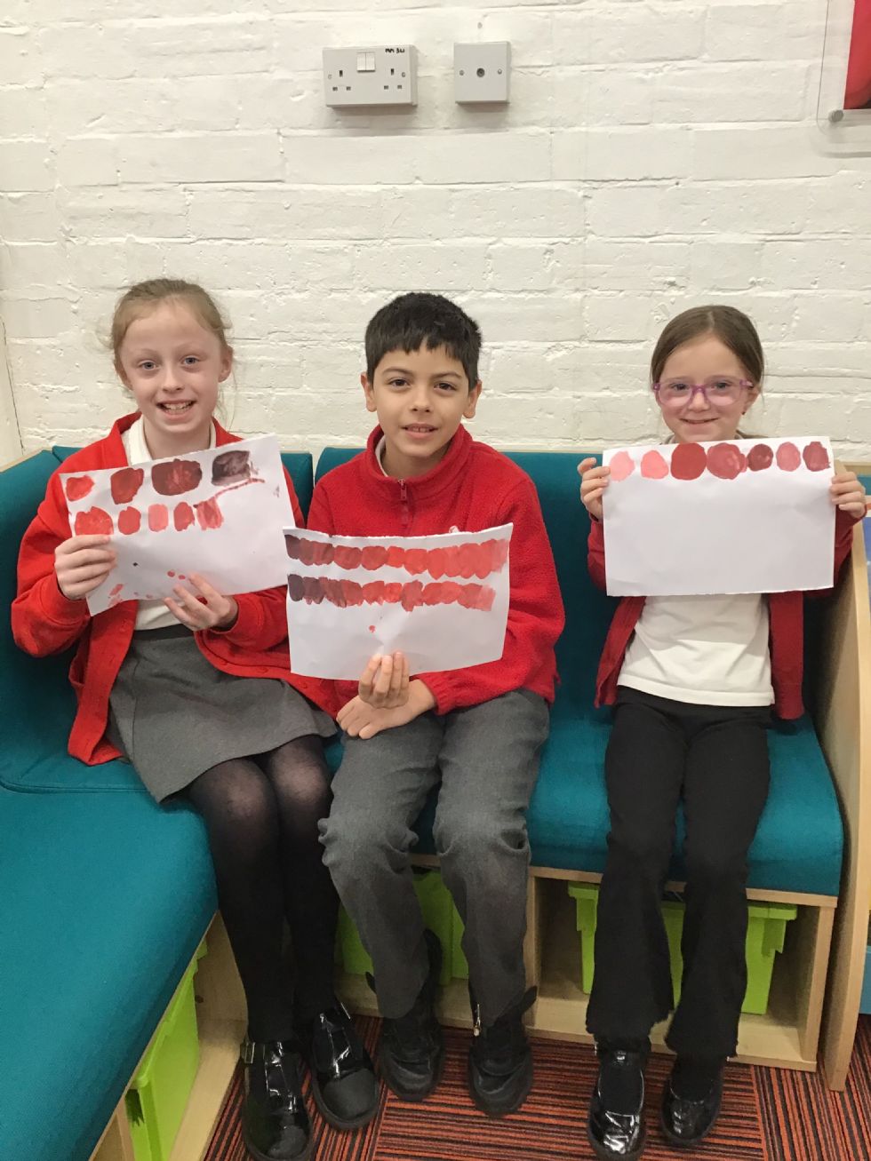We have started our new topic and have been experimenting with adding black and white paints to a colour to create tints and shades.