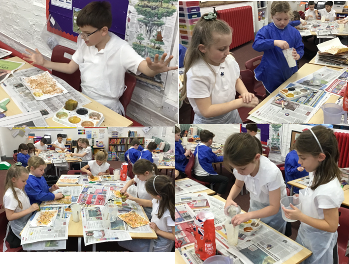 3/4IP made pre-historic cave art. In these photographs, the children are making their own paint which they then coloured with natural spices.