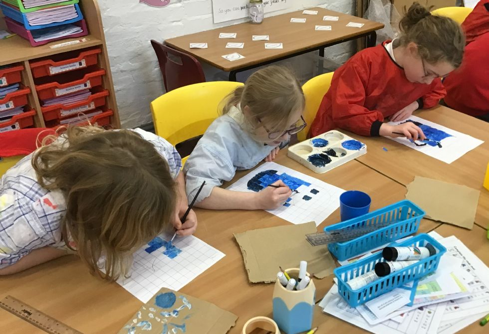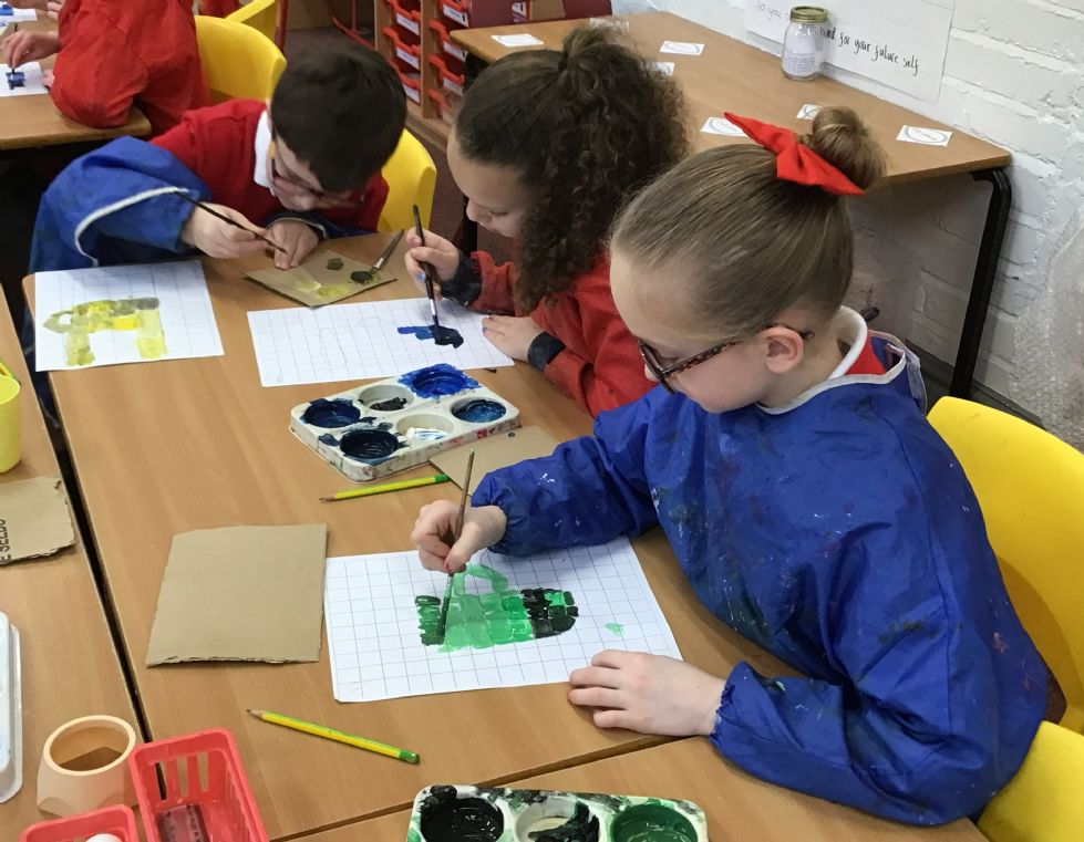 In Art, we have been learning how to create tints and shades of colours and also experimenting with different painting techniques. We applied our new skills to different pieces of art, including still-life painting, creating 3D effects and compositional pieces.