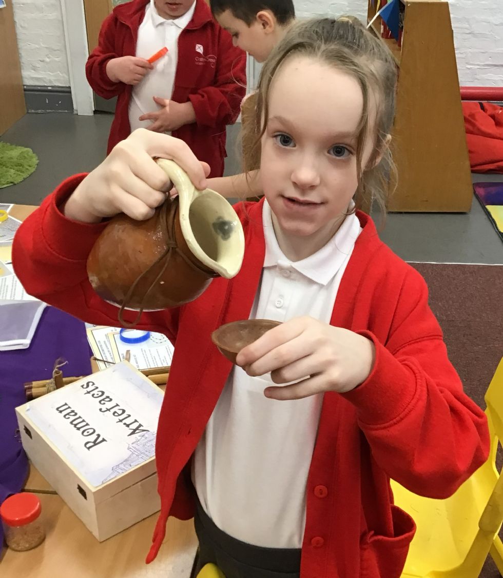 To consolidate and extend our learning in history about the Romans, we held a Roman workshop day. During the day we explored a wide range of Roman artefacts, played Roman games, wore clothing and armour similar to what would have been worn at the time and had a go at building structures as the Romans did. We also had the opportunity to 'see' Rome up close, through the use of VR headsets. It was a brilliant day and we loved every minute!