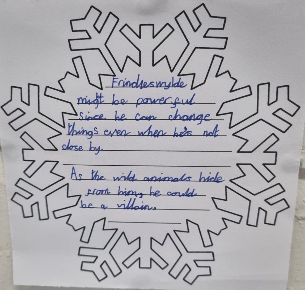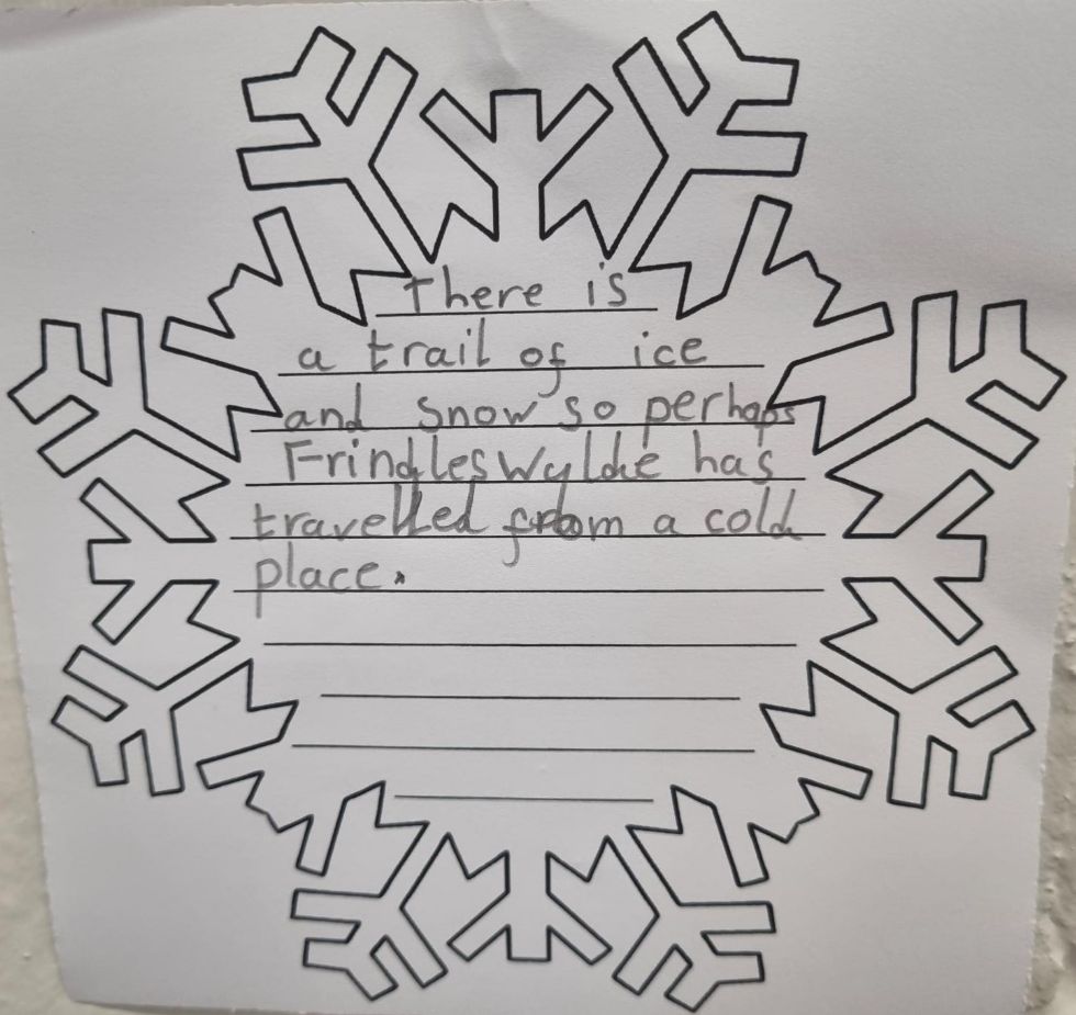 As we arrived at school, we were greeted by some unusual wintery changes in our classroom. After making predictions about who we thought Frindleswylde was, we soon discovered he was one of the main characters in our new class text.
